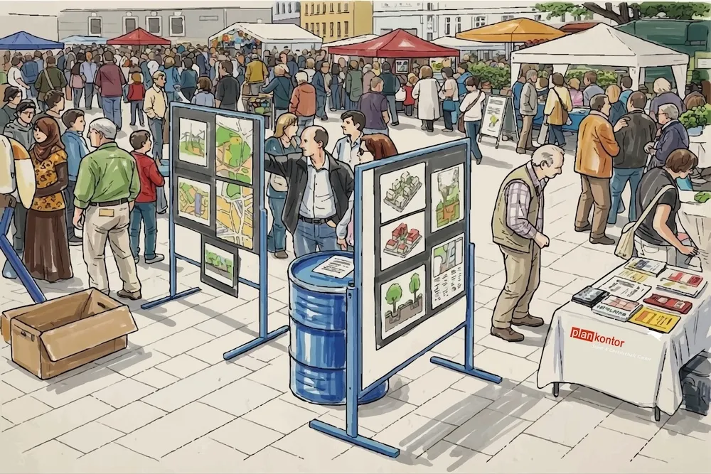Gegenüber den örtlichen und den kommunalpolitischen Gremien und dem Auftraggeber wird kontinuierlich in mündlicher und / oder schriftlicher Form berichtet. Die Arbeitsergebnisse oder der Planungsprozess werden in geeigneter Form dokumentiert. plankontor legt immer großen Wert auf eine enge, vertrauensvolle Zusammenarbeit und Abstimmung mit dem Auftraggeber und anderen Ämtern und Behörden.